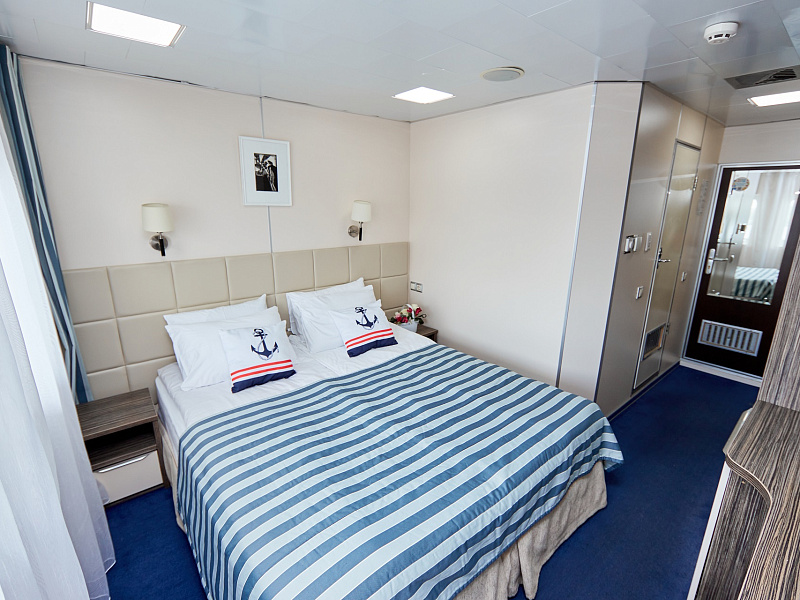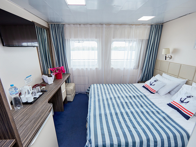 В каюте имеется душевая кабина, двуспальная кровать (или две односпальных по желанию клиента), телевизор, кондиционер, холодильник, внутренняя телефонная связь, ROOM-сервис.