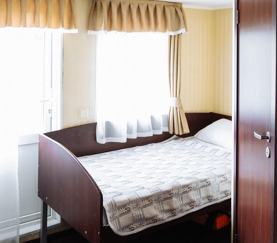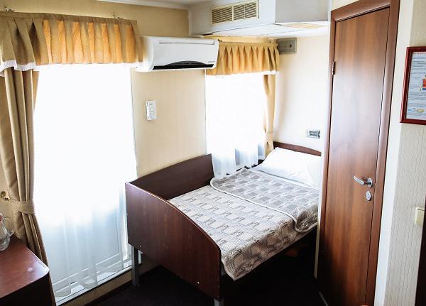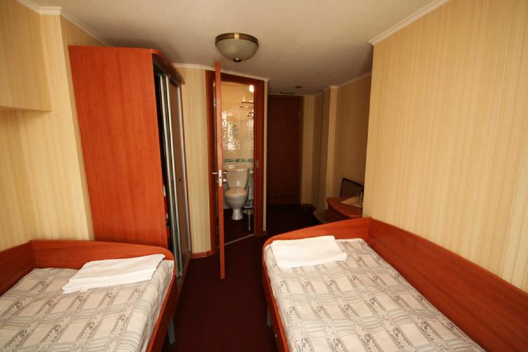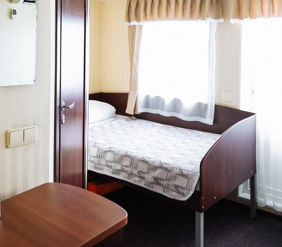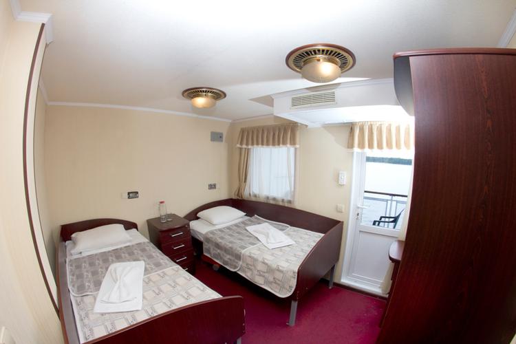 В каюте 404 — двуспальная кровать. Каюты 405, 407, 410 — с возможностью дополнительного размещения ребенка на раскладушке.