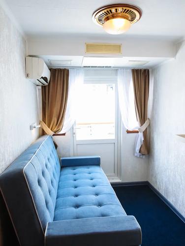 Люкс — двухкомнатная двухместная одноярусная каюта с дополнительным местом (диван), с балконом и удобствами