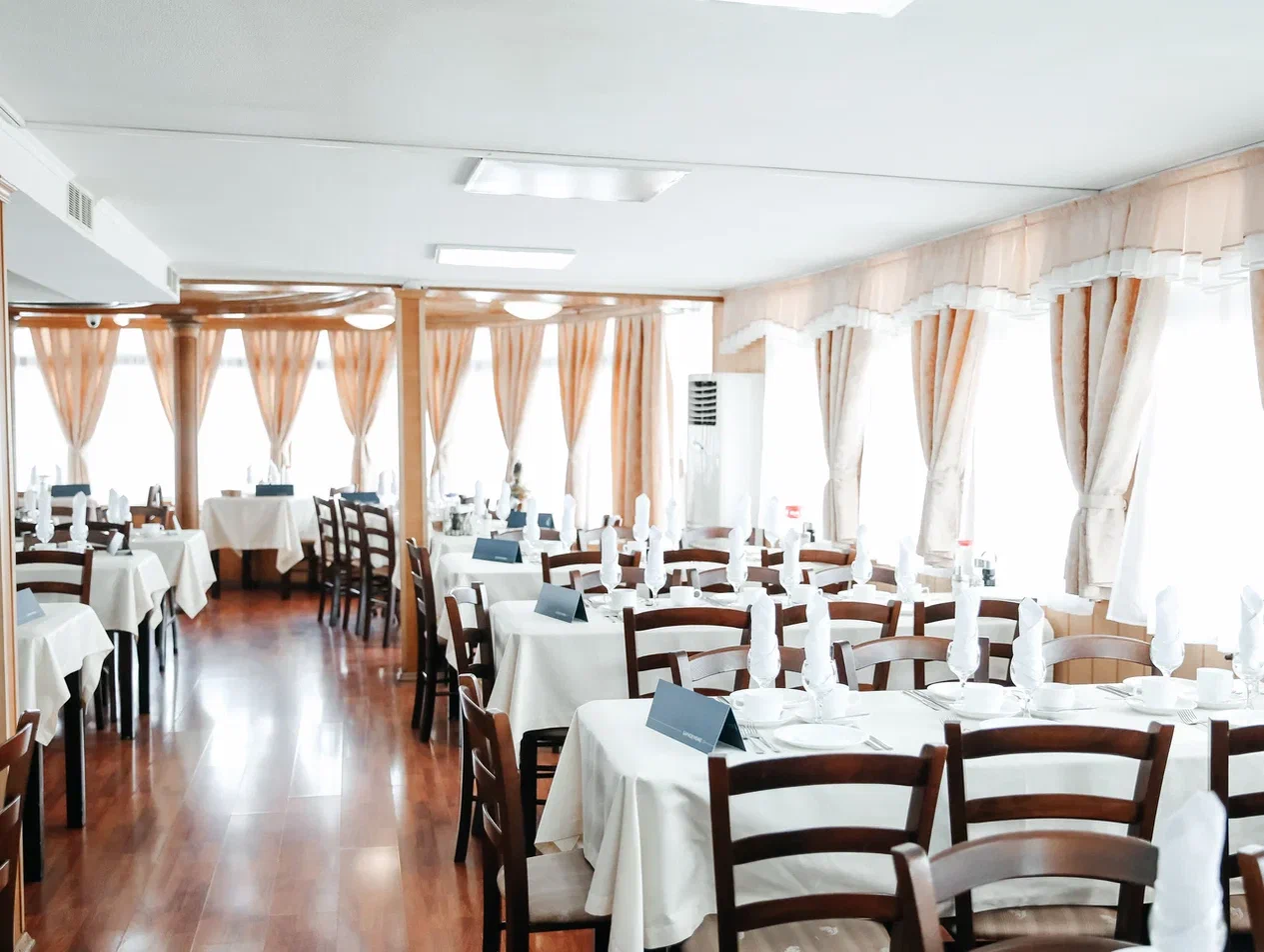 Трёхразовое сбалансированное питание в ресторане. Заказная система. Питание на борту организовано в одну смену.